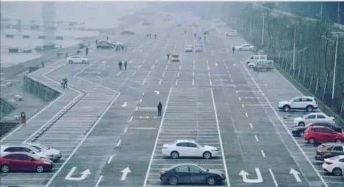 There is an unwritten rule in Japan, those who arrive early to work park further away in a parking lot for those who arrive late to have a space and make it on time.